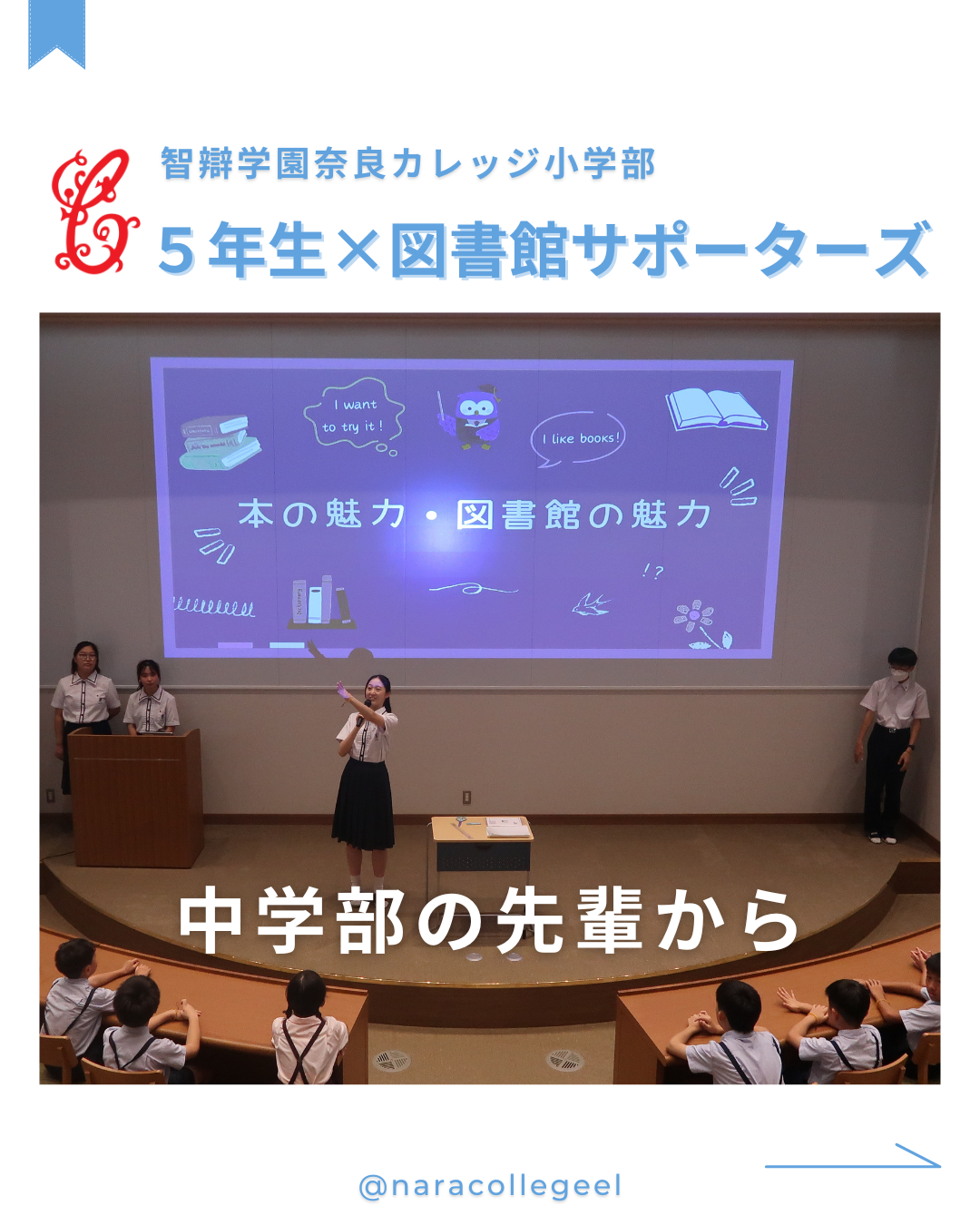 授業 692.5年生×図書館サポーターズ(中学部との連携授業) 2024年8月28日 図書館サポーターズとして活動する中学生が、5年生に「本の魅力 図書館の魅力」をテーマに授業をしてくれました。 図書館サポーターズとは、新しくできた図書館を生徒自身でよりよくしたいと考え、運営に携わっているボランティアのグループです。 児童たちは、「紹介してくれた本を読みたい」「私も図書館サポーターズになってみたい」と話...