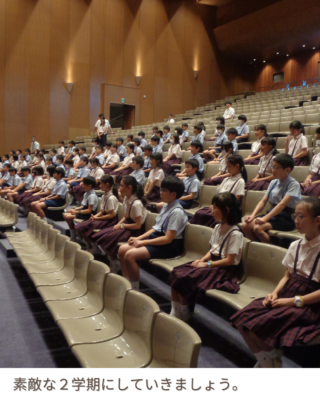 行事 690.2学期始業式 2024年8月24日 2024年8月31日 2学期が始まりました。 夏休み中静かだった校舎に、児童の元気な声が響きます。 始業式では、静かに校長先生のお話を聞きました。 勉強や様々な行事を通して、たくさんのことを学び、充実した2学期になるよう頑張りましょう。