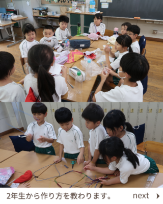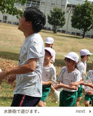 授業 695.1年生と2年生の交流会2「水遊びをしよう」 2024年9月5日 2024年9月12日 1年2年の交流会で水遊びをしました。 夏休みの間に2年生がシャボン玉の吹き口や水鉄砲を家にある材料で作り、その作り方を1年生に教えます。一緒に作ったら外に出て遊びます。先生が水鉄砲のまとになり、児童は大喜びで追いかけていました。みんな水にぬれて楽しく遊びました。