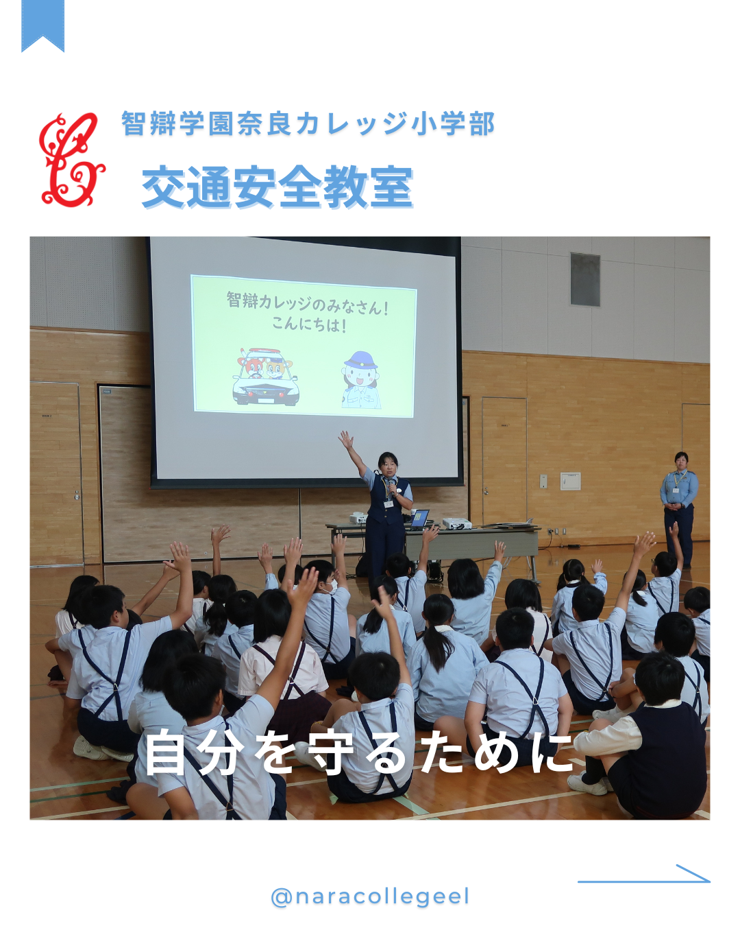 行事 720.交通安全教室 2024年10月16日 交通安全教室を実施しました。 奈良県警察本部の警察官がお越しくださり、低学年には歩くときに気をつけること、高学年には自転車に乗るときに気をつけることをお話してくださいました。また、VRを使って、道路上でどのように行動すればよいかを疑似体験できました。今日学んだことをこれからの生活にいかしていきましょう。...
