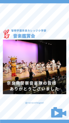 行事 721.奈良県警察音楽隊音楽鑑賞会 2024年10月17日 2024年10月17日 交通安全教室の後は、奈良県警察音楽隊の演奏を鑑賞しました。児童たちに人気の曲をたくさん演奏してくださいました。手拍子をしたり、踊ったりしながらみんな楽しそうに聞いていました。 ※この記事の動画はInstagramにてご視聴いただけます。上の画像をクリックしてください。
