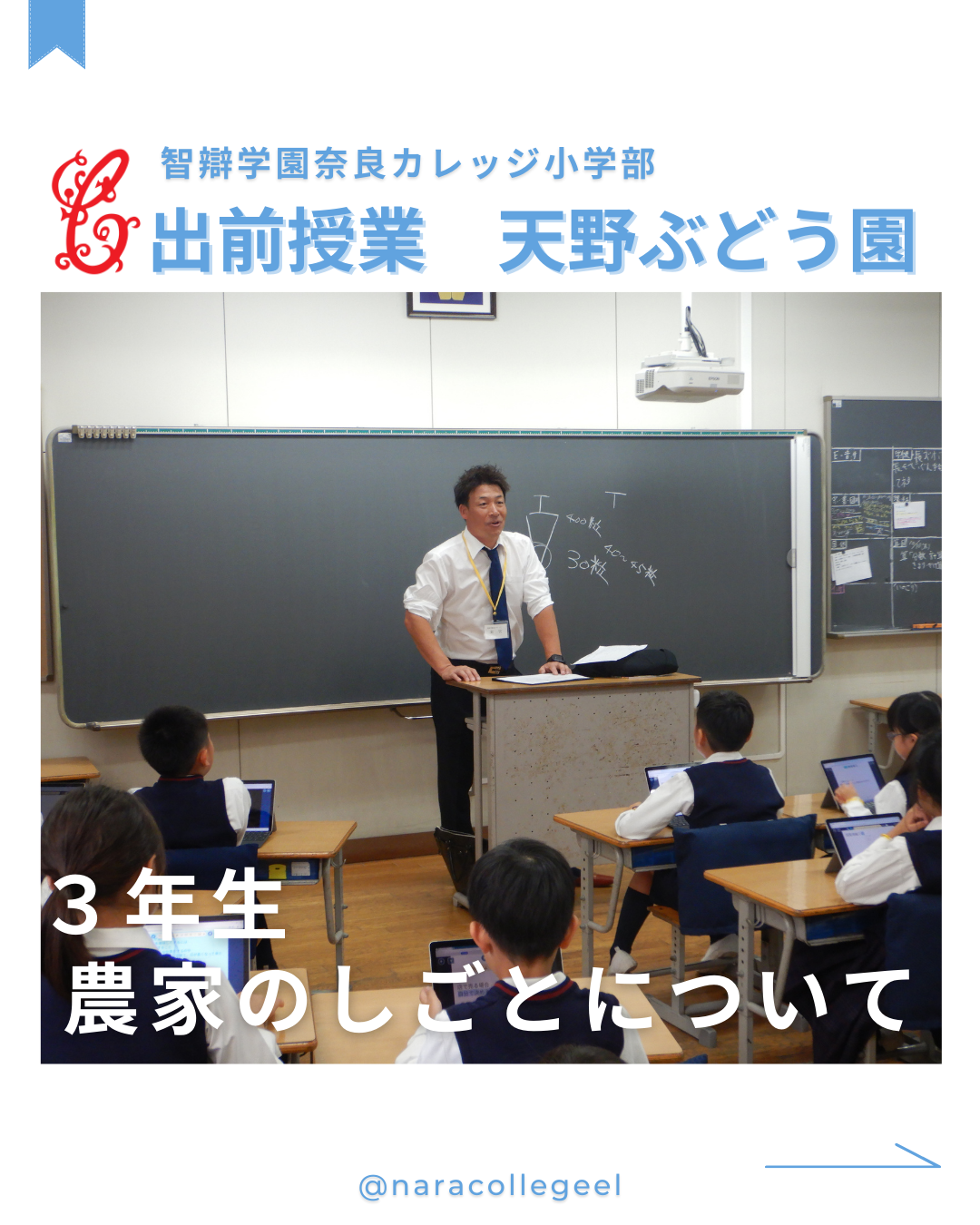 授業 723.出前授業 天野ぶどう園(3年生) 2024年10月21日 3年生社会科「農家のしごと」として、天野ぶどう園の天野さんに来ていただきました。 ぶどうがどんな手間をかけて育てられているのか、どんなことに気を付けて仕事をしているのかなど、様々なことを学びました。...
