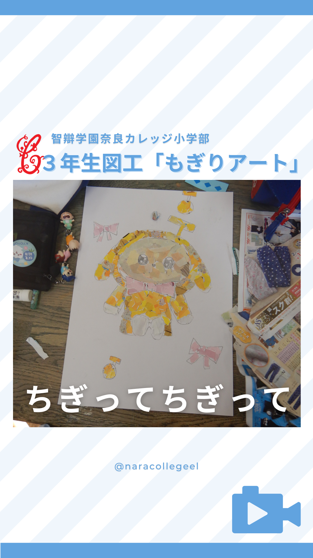 授業 738.図工「もぎりアート」(3年生) 2024年11月20日 3年生図工「もぎりアート」の様子です。 広告やチラシの中から必要な色を手でちぎり、一枚の絵に仕上げていきます。 「この色とその色、交換しよう」とお互い交渉ながら、楽しく作っていました。 ※この記事の動画はInstagramにてご視聴いただけます。上の画像をクリックしてください。...