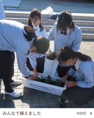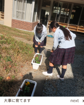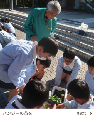 その他 742.人権の花を育てよう(5年生) 2024年11月28日 2024年11月28日 5年生が人権の花を植えました。人権擁護委員の方がパンジーの苗を持ってきてくださり、みんなで植えました。人権について様々なお話をしてくださいました。パンジーの語源はフランス語で「考える」という意味だそうです。パンジーを育てながら、思いやりについて考え、心にも大きな人権の花を咲かせましょう。