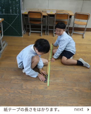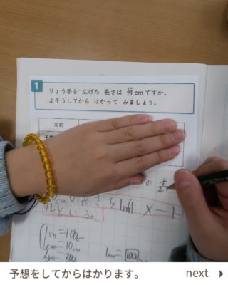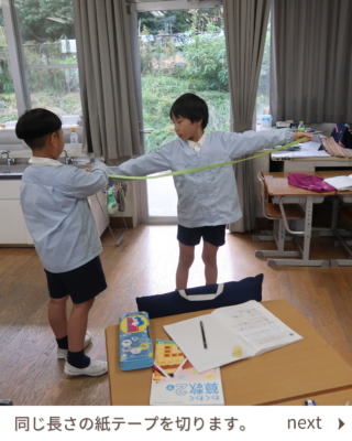 授業 745.算数「両手を広げた長さをはかろう」(2年生) 2024年12月4日 2024年12月16日 2年生が算数の時間に長さの学習をしています。この時間は両手を広げた長さをはかりました。先に予想をしてからはかります。児童はみんな興味津々で取り組みました。