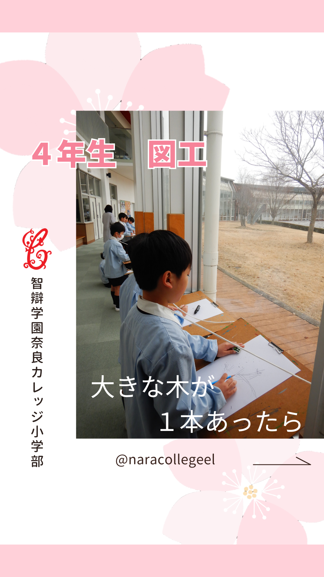 授業 771.図工「大きな木が1本あったら」(4年生) 2025年1月27日 4年生図工の授業の様子です。 この日は図工室を出て、憩いの広場の木々の中から「マイツリー」を決め、よく観察して描き始めました。 今後は、この木にそれぞれ思い浮かべたものを描き足していきます。 どんな「マイツリー」が出来上がるか楽しみです♪ ※この記事の動画はInstagramにてご視聴いただけます。上の画像をクリックし...