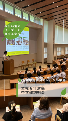 その他 863.中学部説明会(6年生) 2025年8月4日 2025年8月4日 6年生(内部生)を対象に、中学部説明会が行われました。 中学部の校長先生から教育の特長や入試などについて、入試広報部長の先生からは学校生活についてお話がありました。 質疑応答の時間には、児童からたくさんの質問が出て、中学部の先生方は丁寧に答えてくださいました。 児童たちは、中学部への進学が近づいてきたことに気づかされ、真剣にお話を聞いていました。 ※この記事の動画はInstagramにてご視聴いただけます。上の画像をクリックしてください。