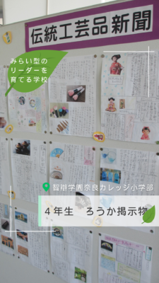 その他 877.ろうか掲示物(4年生) 2025年9月8日 2025年9月9日 4年生の廊下掲示です。社会科の授業で伝統工芸品について学習したので、国語の授業で習った新聞づくりの知識を生かして、児童たちが「伝統工芸品新聞」を作りました。奈良カレッジ小学部では、教科横断的な学習にも積極的に取り組んでいます。 ※この記事の動画はInstagramにてご視聴いただけます。上の画像をクリックしてください。