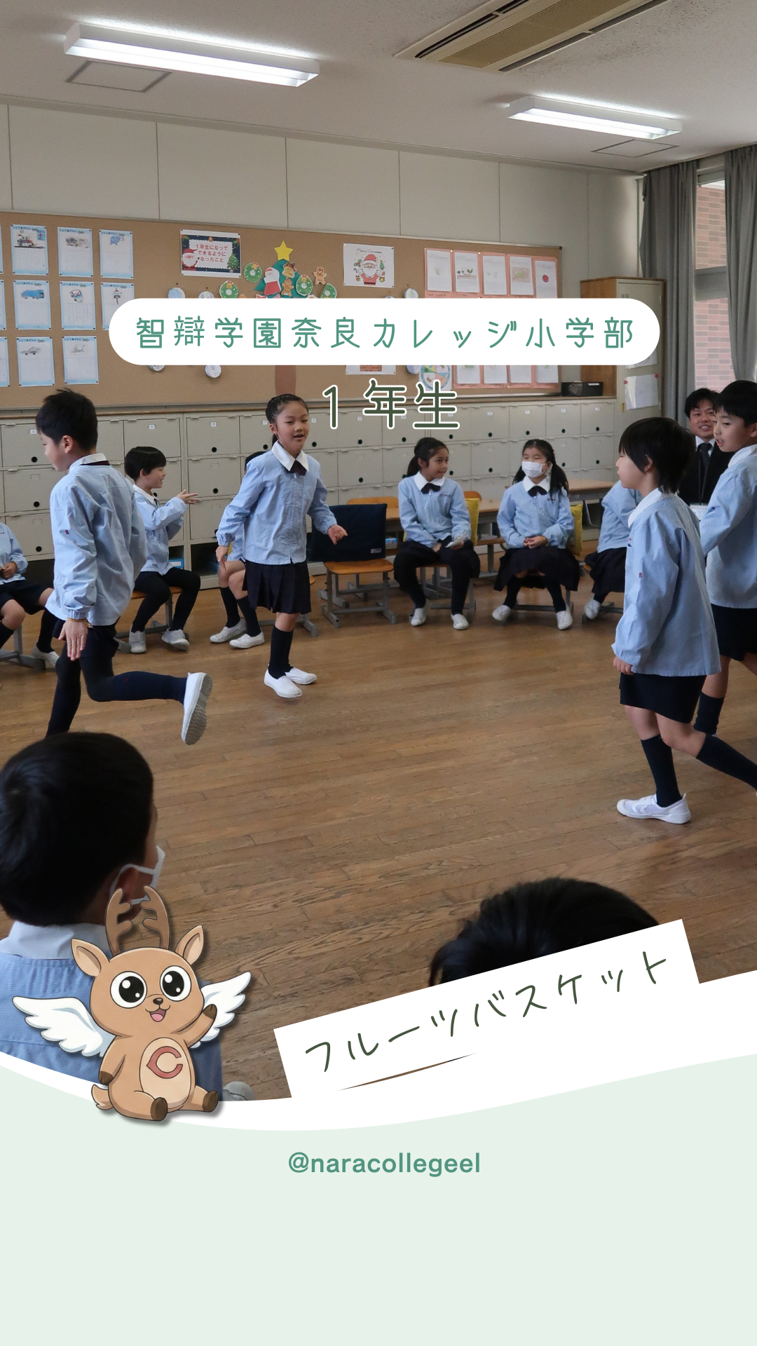 授業 923.フルーツバスケット(1年生) 2026年1月14日 3学期初日、1年生がフルーツバスケットをしました。 全員分の椅子があり、あぶれる心配のないフルーツバスケットです。 ルーレットで当たった人が真ん中に立ち、お正月の思い出を紹介してからお題を言います。 「そうなんだ!」「ぼくも!」と言いながら、楽しく発表できました。 ※この記事の動画はInstagra...