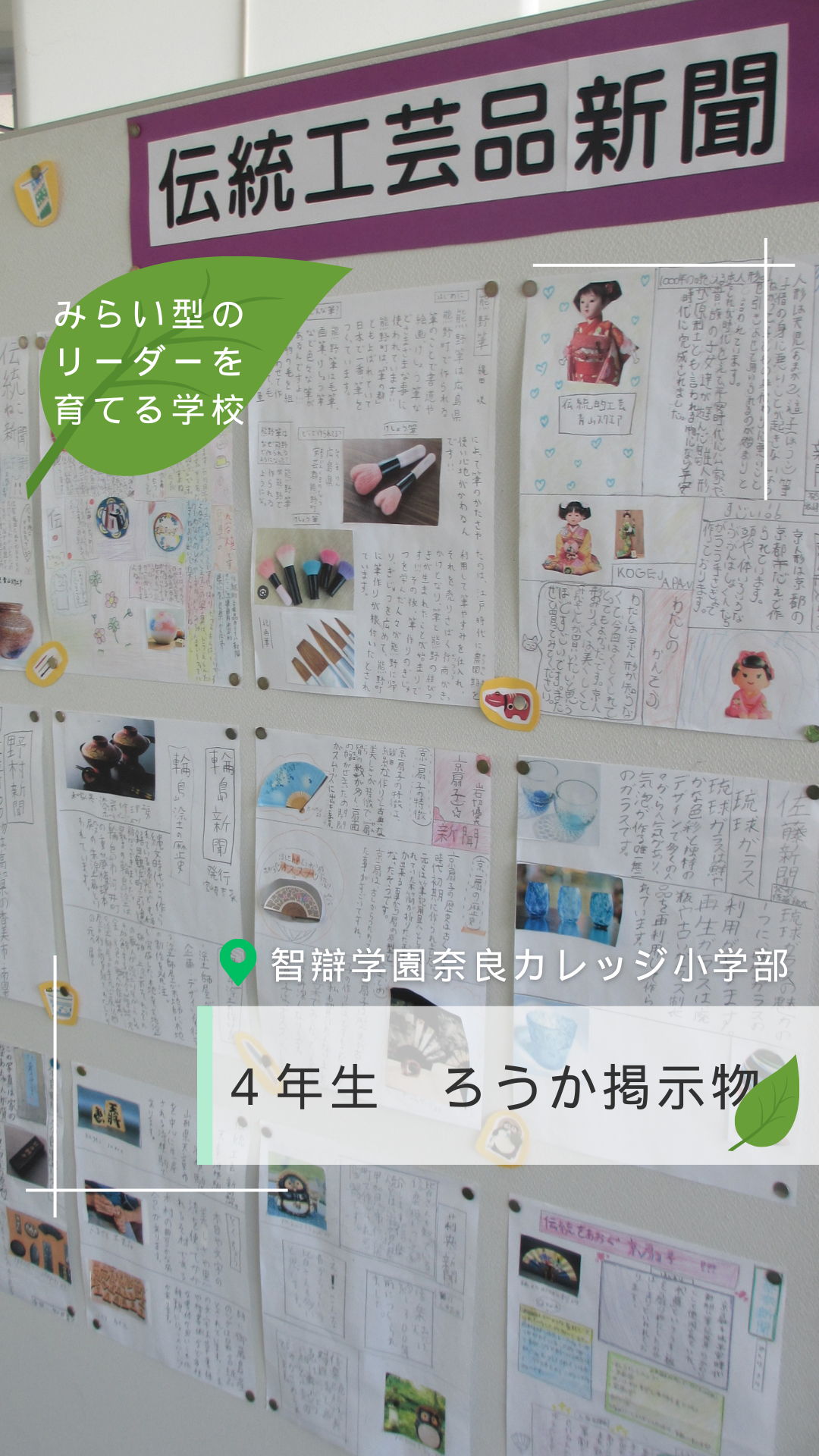 その他 877.ろうか掲示物(4年生) 2025年9月8日 4年生の廊下掲示です。社会科の授業で伝統工芸品について学習したので、国語の授業で習った新聞づくりの知識を生かして、児童たちが「伝統工芸品新聞」を作りました。奈良カレッジ小学部では、教科横断的な学習にも積極的に取り組んでいます。 ※この記事の動画はInstagramにてご視聴いただけます。上の画像をクリックしてください。...