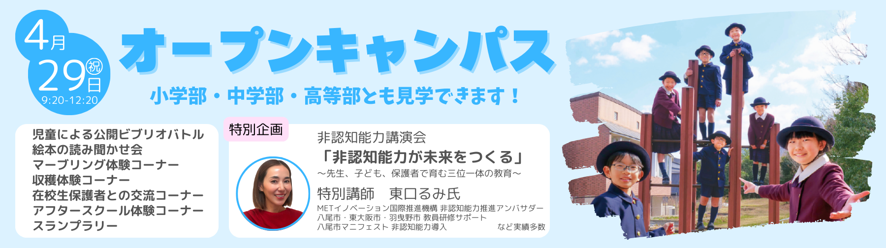 また、今回は特別企画として、本校卒業生保護者で非認知能力アドバイザーとして活躍する東口るみ先生をお迎えして、非認知能力についてご講演いただきます。