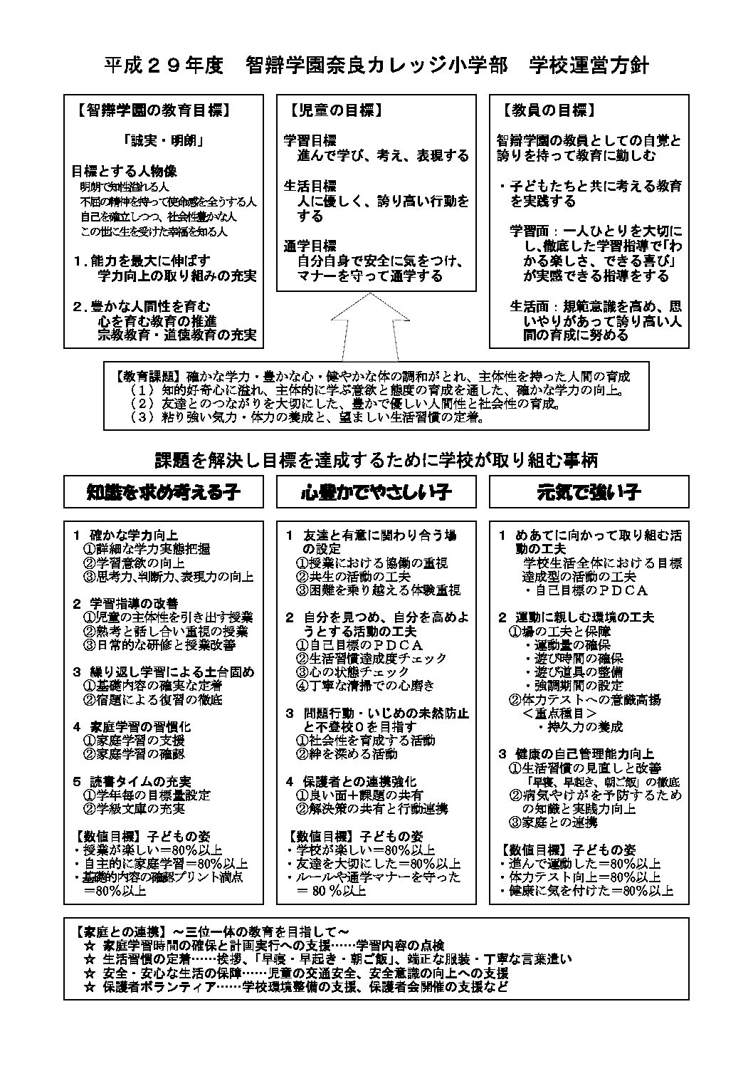 智辯学園奈良カレッジ小学部では、学校運営の改善を目指し、学校評価を行っています。結果は次の通りです。