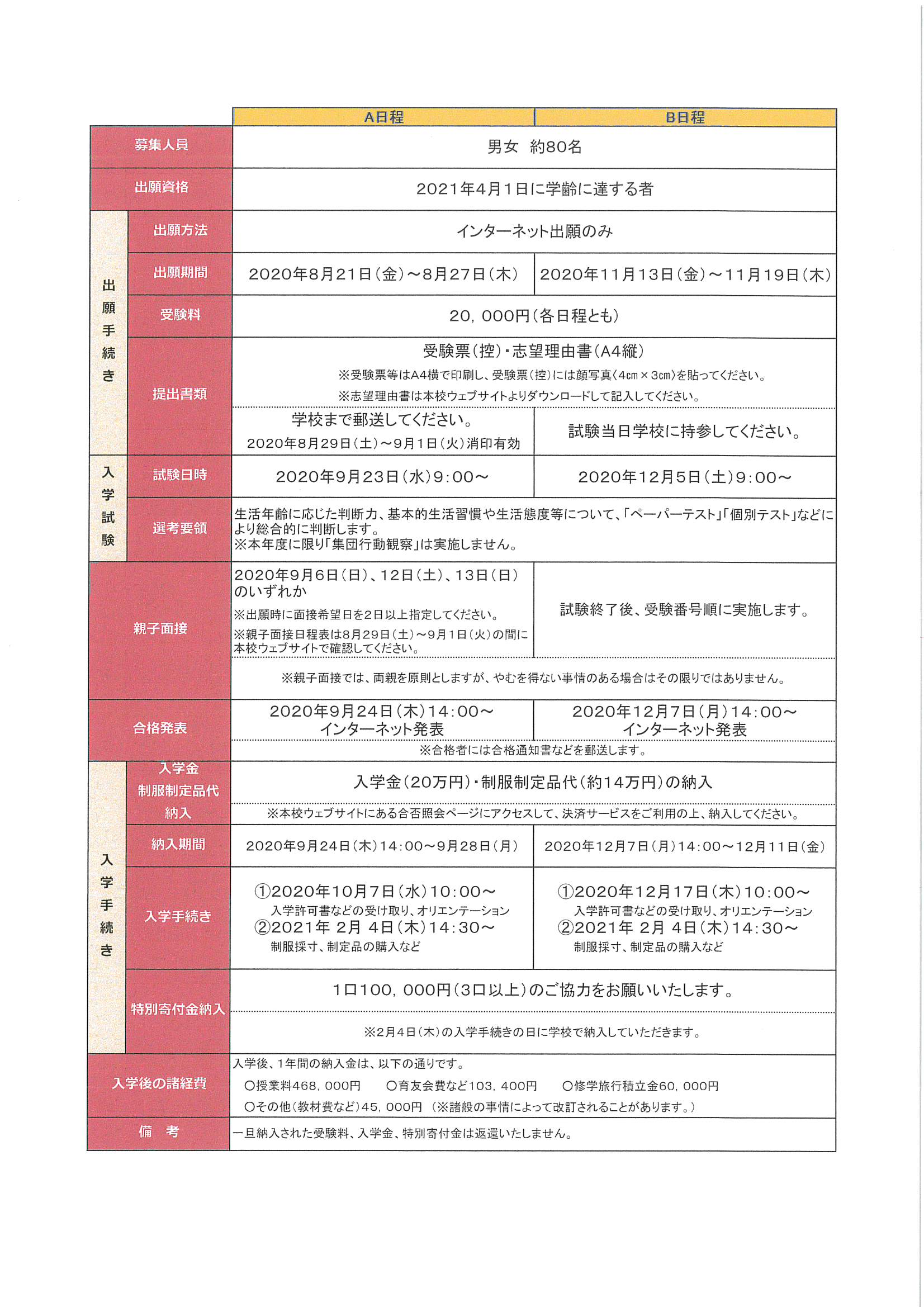 なお、詳細が記載されている募集要項については、7月18日(土)の入試説明会で発表いたします。