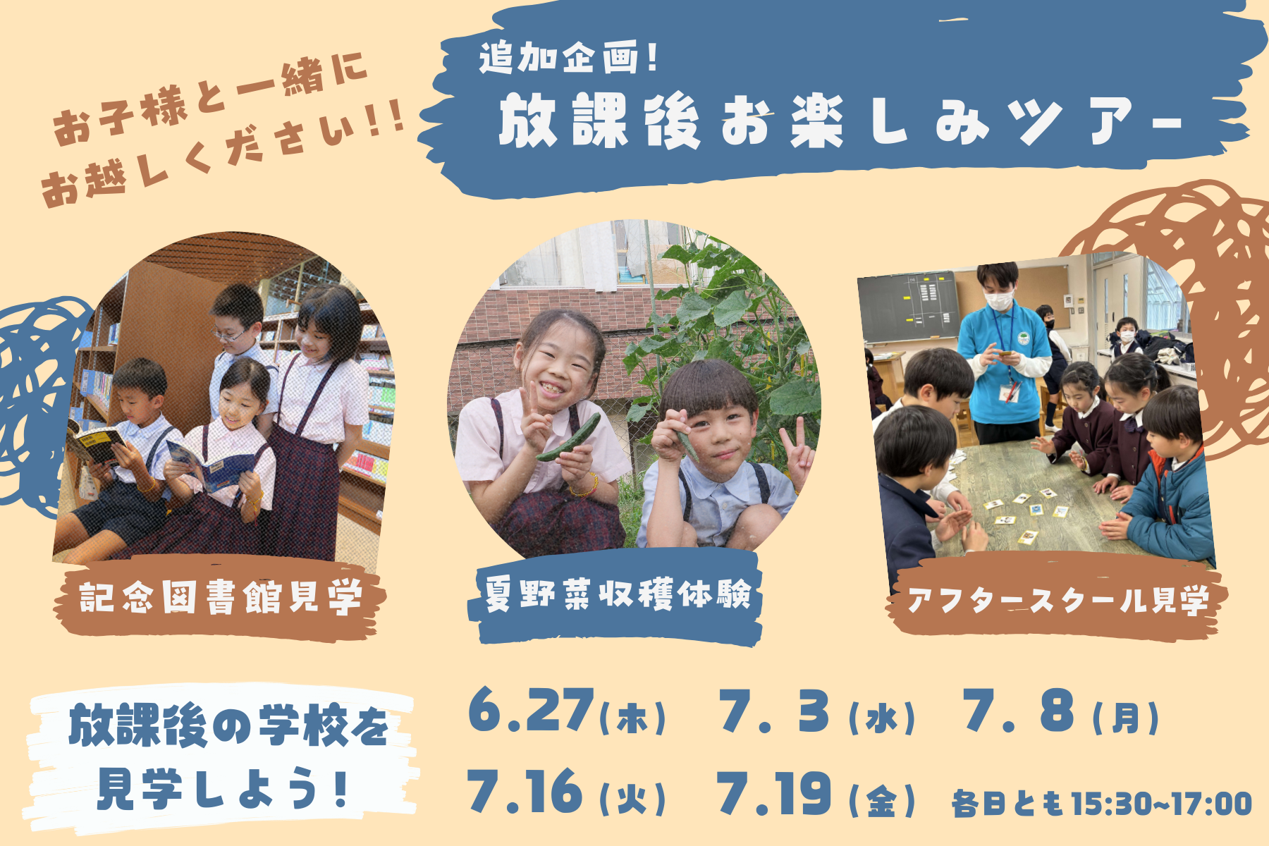6月27日(木)・7月3日(水)・8日(月)・16日(火)・19日(金)に「放課後お楽しみツアー」を開催いたします。