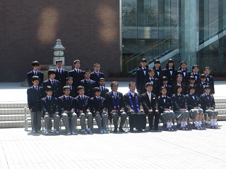 最後に,講堂前で記念撮影がありました。さあ,いよいよ中学生活がはじまります!