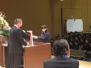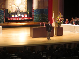 入学式では,理事長から念珠と礼拝経が新入生一人ひとりに手渡されました。