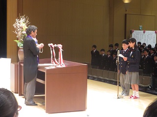 希望を胸に,中学部1年生が新たな一歩を踏み出します。2015年度は4月4日(土)に行われました。