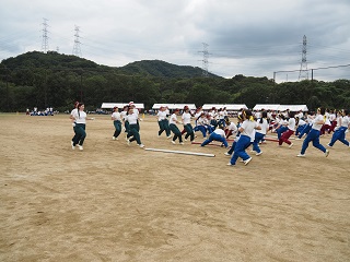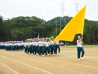入場行進。今年もブラスバンド部の演奏による行進曲に合わせて行いました。