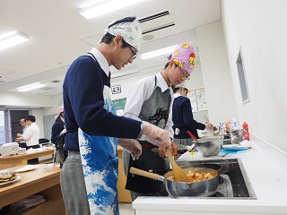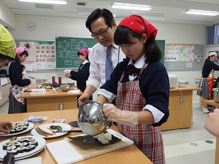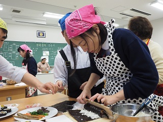 その他 ハングル講座特別講義 2015年12月21日 2015年12月21日 ハングル講座で平成27年12月21日(月)に「料理から韓国文化を学ぶ」という高等部1年希望者対象の特別講義を行いました。 韓国ではおやつとしても食べられる人気のトッポギを作りました。 キンパと呼ばれる海苔も巻きました。 講座担当の奈良韓国教育院院長 李 萬炯(イ マンヒョン)先生のご指導を受けました。 トッポギ,キンパ,チヂミの完成です。