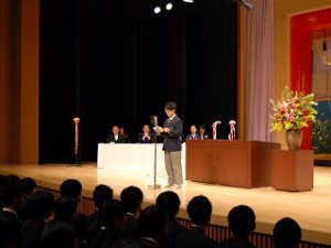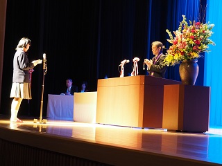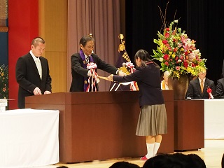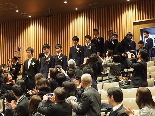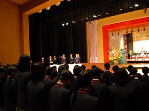 その他 高等部卒業式 2016年1月27日 2016年1月27日 平成28年1月27日(水)に高等部卒業式が行われました。一人ひとりに証書が手渡され,未来への決意を新たに卒業しました。 担任先導で卒業生が入場します。 校長先生が一人ひとりに卒業証書を手渡します。 理事長先生が一人ひとりとかたい握手をかわされました。 校長先生の告辞。 理事長先生のお諭し。 辯天宗管長様はじめたくさんの方々が来賓としてお祝いに来てくださいました。 在校生による送辞。 卒業生の答辞では拍手が鳴り止みませんでした。 「蛍の光」斉唱。いよいよ新たな旅立ちです。 在校生から卒業生へのお祝いの言葉です。