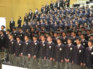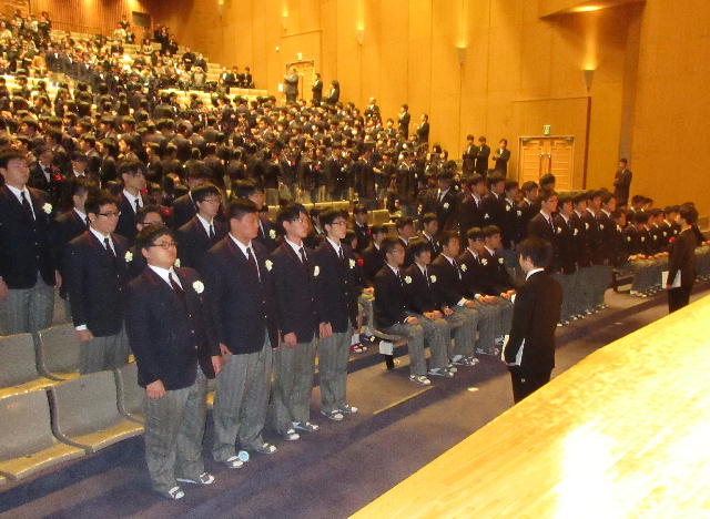 その他 高等部卒業式 2017年1月25日 2017年1月25日 平成29年1月22日(日)高等部3年生(8期生)の卒業式が厳かに行われました。卒業生は,6年間または12年間共に過ごした仲間や先生との別れを惜しみつつ卒業して行きました。在校生に見送られ,凜々しく,そして晴れやかに胸をはって退場してゆくその姿が印象的でした。 盛大な拍手の中の入場 卒業証書の授与と理事長先生との握手 校長先生の告辞 理事長先生のお諭し 生徒会長による送辞 卒業生代表による答辞 校歌斉唱 卒業おめでとう!