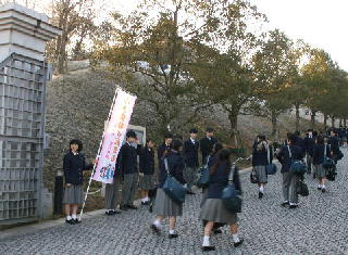 その他 挨拶運動 2017年2月9日 2017年2月9日 2月1日より2月8日までの一週間,生徒会執行部と風紀委員会が合同で,挨拶意識向上を目指して挨拶運動を実施しました。校内数カ所に分かれて登校してくる生徒たちに自ら率先して挨拶し,挨拶の大切さを呼びかけました。 第二グラウンド横で 徒歩通学生には北門で バス利用の生徒には正門横で