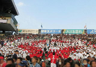 その他 高1が選抜高校野球の応援に参加 2017年3月20日 2017年3月20日 第89回選抜高校野球大会が3月19日に開幕しました。この大会には,奈良カレッジの兄弟校である智辯学園高校も出場し大会連覇に挑みます。智辯学園高校は,大会初日第3試合で熊本工業高校と対戦し,9対0で勝利し,2回戦に駒を進めました。この日,奈良カレッジ高等部1年生も応援に参加し,智辯学園高校の生徒と共に声の限りに応援しました。2回戦では奈良カレッジ中学部3年生が応援に参加する予定です。 前の試合が長引き,生徒たちは入口付近で長時間辛抱強く待機しました。 奈良カレッジの生徒もCの人文字に加わって応援します。