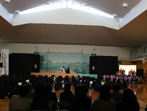 淡路人形座の方が,舞台の設営や音響・照明設備の設置にかなりの時間を費やし,生徒たちの練習・リハーサルも行ってくださいましたので,公演は午後でしたが準備は午前中から進められました。出前公演になったことや出演した生徒も多かったことから,生徒たちにとって忘れられない鑑賞教室となりました。
