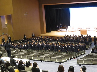 その他 中学部合唱コンクール 2017年11月9日 2017年11月9日 奈良カレッジ中学部では,音楽の授業の一環として合唱コンクールを開催しています。このコンクールの結果によって,後日開催される文化発表会で発表するクラスが決まります。 今年の各学年のテーマ曲 中学部1年「空高く」 中学部2年「風になる」 中学部3年「旅立ちの日に」 各クラスともに,ピアノ伴奏や指揮は生徒が行います。なお,発表順は抽選で決まります。 ☆中学部1年(発表順は中1C→中1A→中1B)優勝:中1A 中1A 中1B 中1C ☆中学部2年(発表順は中2C→中2A→中2B)優勝:中2A 中2A 中2B 中2C ☆中学部3年(発表順は中3C→中3B→中3A)優勝:中3A 中3A 中3B 中3C ☆クラス発表の後,学年ごとの合唱も行われました。 中学1年 中学2年 中学3年 ☆最後に,優勝クラス,最優秀指揮者・最優秀伴奏者の表彰が行われました。