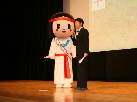 行事 「山辺の道ウォーキング」説明会 2018年3月2日 2018年3月30日 3月9日(金)に予定している「山辺の道ウォーキング」説明会が,学年末考査最終日に行われました。この説明会は,今年度初めて行われるウォーキングの事前学習のために開催されたもので,中1~高2までの全校生徒を対象に講堂で行われました。先生のスライドや動画を交えたウィットに富んだ説明と,桜井市のマスコットキャラクター「ひみこちゃん」のサプライズ登場に会場は大いに沸いていました。 コースの見どころを先生が解説 「ひみこちゃん」の登場