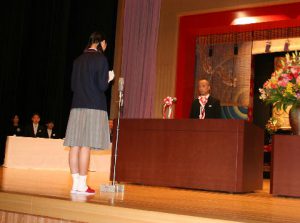 | 代表生徒が決意表明を行います | 理事長先生のお諭し |