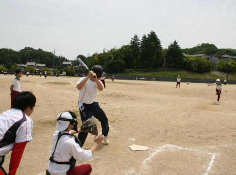 | 男子ソフトボールは第二グラウンドで実施。中学生とはやはり迫力が違います。 | 女子ソフトボールは第一グラウンドで実施され,真剣そのものの熱戦が繰り広げられました! |