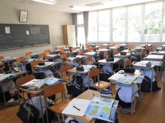 行事 奈良県いっせい地震行動訓練「ナラ・シェイクアウト」の実施 2018年7月12日 2018年7月12日 7月9日の「奈良県地震防災の日」を受けて,7月10日(火)地震から身を守る行動の確認を行う「ナラ・シェイクアウト」(奈良県いっせい地震行動訓練)を今年も実施しました。地震発生の訓練放送に合わせ,生徒は安全確保訓練をしました。先月の大阪北部地震の記憶も真新しい中,生徒たちは真剣に訓練行動を行いました。