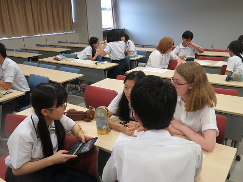 留学生引率教員のEileen先生による高2理系生徒と留学生を対象にしたactiveな数学の授業。活発なdiscussionも行われました。