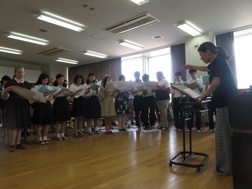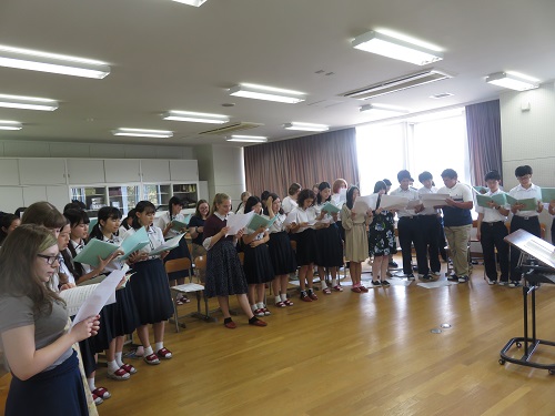 音楽の実技。歌唱指導を音楽選択の生徒たちと一緒に受けました。