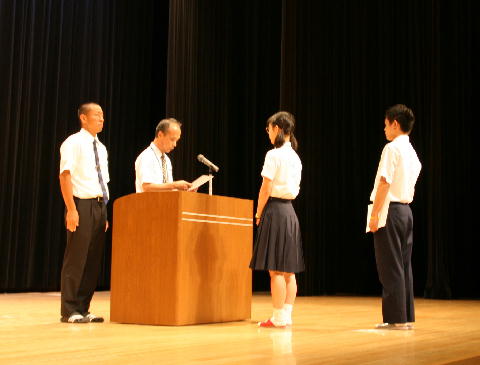 8月8日(水)中学部と高等部において終業式が行われました。双方式典に先立ち,校内球技大会や県総体などの表彰伝達が行われました。特に,中学では砲丸投げにおいて県総体で優勝し,近畿大会でも5位に入賞した生徒の表彰が行われ,生徒達からも大きな拍手が送られました。