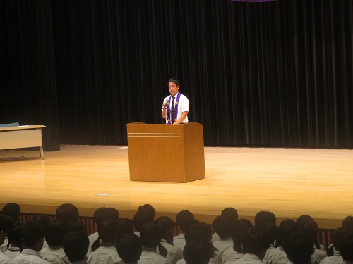 行事 2学期始業式 2018年9月3日 この学期から中学部と高等部でそれぞれで始業式が行われ,各校長先生から訓辞がありました。どちらも一学期の反省を活かして二学期に取り組むよう,心得が話されました。 高等部始業式。高等部校長先生の訓辞。 高等部始業式の校歌斉唱の様子。 中学部始業式。中学部校長先生の訓辞。 中学部始業式の校歌斉唱の様子。 ...