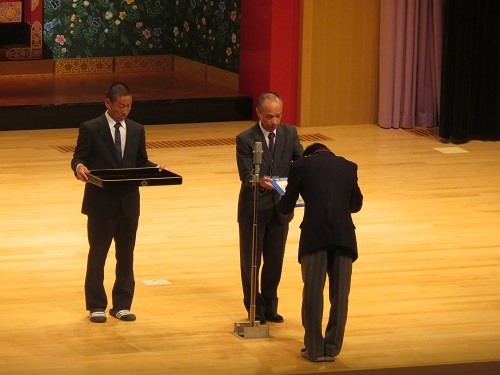 本日,10月の感謝祭が執り行われました。感謝祭に先立って,先の福井国体で陸上男子少年共通の部において5000m競歩で3位に輝いた生徒の表彰が行われました。