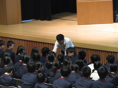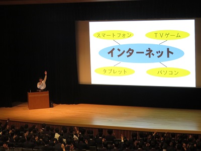 | 香芝警察署生活安全課の 濵口係長さんによる講習です。 | 濵口係長さんは生徒の中にも入って活発にお話しくださいました。 |