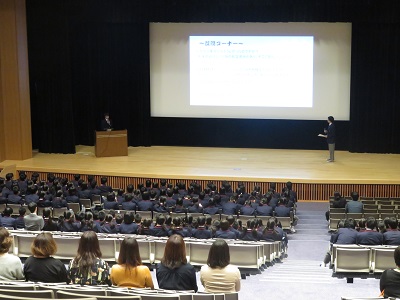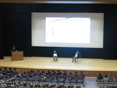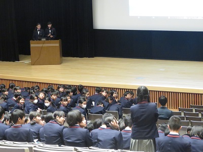 その他 キャリア教育発表会 2018年11月10日 2018年11月9日 中学部3年では,キャリア教育の一環として,さまざまな職業の方々にインタビューを行い,調べたことをスライドにまとめてグループで発表します。発表には事前に予選が行われ,選ばれた10グループが今回の講堂での全体発表に臨みました。 中学生と保護者も発表を聞きました。 発表は対話形式のものもありました。 活発な質疑応答も行われました。 最後に校長先生のご講評がありました。