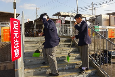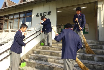 その他 清掃奉仕活動Ⅱ 2018年11月30日 2018年11月30日 奈良カレッジでは,地域への貢献と奉仕の精神を養うために,利用している駅や通学路の清掃活動を行っています。今回は期末考査の最終日に実施され,3つの学年がいくつかの班に分かれて各駅や通学路を清掃しました。この日は小春日和の心地よい天候に恵まれ,生徒たちは一生懸命作業に励んでいました。 関屋駅にて 上ノ太子駅にて 高井田駅にて