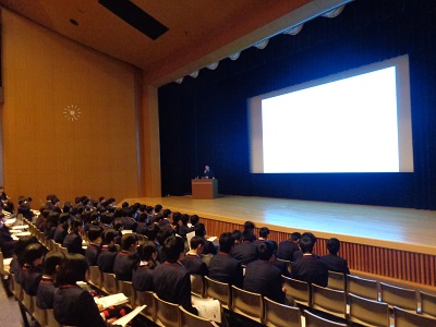 12月22日(土)中学3年生と高校1年生を対象に進学講演会を開催しました。この講演会では,ベネッセコーポレーションの森 太一郎先生が,「高大接続改革の概要」や「どのような力が求められるのか?」,そして「求められる力をどのように伸ばすのか?」などをわかりやすくお話しくださいました。この入試改革期に受験を迎える高校1年生や中学3年生,そしてその保護者に対して1時間半にわたり熱く語ってくださいました。大学入試がどのように変わり,いかに乗り切ればよいのかのヒントを知ることできる講演会だけに,生徒・保護者ともに熱心に耳を傾けていました。