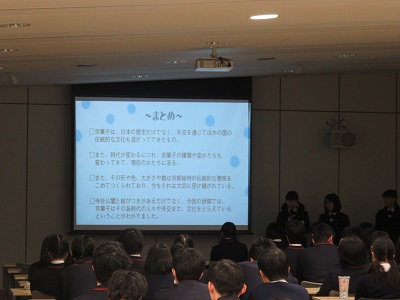 その他 高1京都見学発表会 2018年12月27日 2018年12月27日 高等部1年では,毎年秋にグループごとにテーマを決めて京都を訪れる,京都見学を実施しています。事前学習を行った上で,現地に赴き,そのテーマに関する体験や見学を行います。これらは見学させてもらう企業や団体に対して事前に連絡を取った上で訪問します。実施した後は,事後学習とともに得られた成果をまとめ,各グループが発表します。