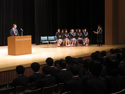 中川高等部校長による歓迎の辞 パク教頭先生による訪問の挨拶