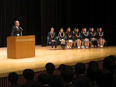 留学生代表による挨拶 美林女子高等学校と留学生全員の紹介