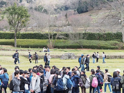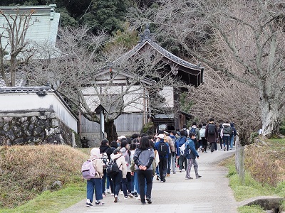 3月8日(金)「飛鳥ウォーキング」が行われました。昨年度の山辺の道につづいて,今年は古代史の舞台である飛鳥の地を巡りました。当日は天候にも恵まれ,中学1年から高校2年までの約570名の生徒が参加しました。中学生および高校女子と高校男子とでは途中経路が異なり,それぞれに応じた距離を歩きます。生徒たちは,多くの史跡を巡りながら,チェックポイントを通過しゴールを目指しました。生徒たちにとって,学校とはまた違った楽しい一日になったことでしょう。