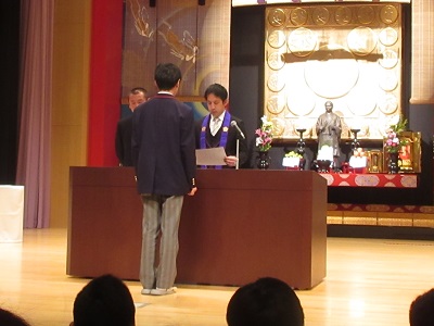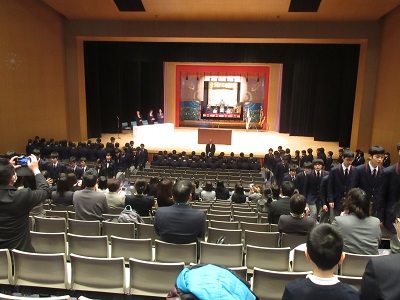 3月15日(金)中学3年生の卒業式が行われました。本校は中高一貫制ではありますが,義務教育課程に終わりを告げ,高校段階に入る儀式として行われます。これを契機に,生徒たちは高校生になる自覚を持ち,自らの意志や目標を持って学んでいく決意を固めます。