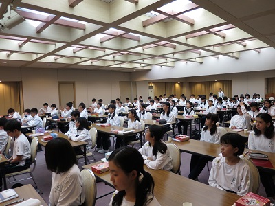 奈良カレッジでは中学部に入学してすぐにオリエンテーション合宿を実施します。この行事は,生活や学習についてのオリエンテーションを学校と宿泊施設の両方で実施するものです。昼間は学校で授業を受け,夜は宿泊施設を用いて主に家庭学習について学びます。合宿で新しい友人と寝食を共にすることで,よりスムーズな仲間づくりが進みます。今年は4月15日から17日の2泊3日で実施されました。