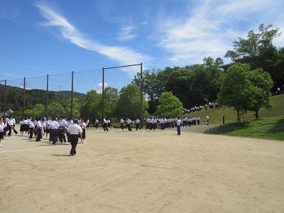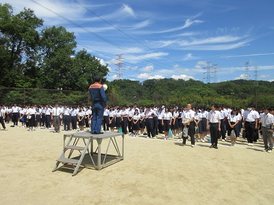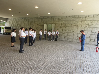 6月3日(月)香芝消防署の協力を得て,小学部・中学部・高等部の3つの校種が共同で防火避難訓練を実施しました。この訓練では,自動火災警報装置や緊急放送を用いる中,各一次避難場所への避難行動がとられました。避難に関する諸注意は,事前に担任の先生から受け,避難完了後小学部と中学・高等部それぞれに分かれて消防署の方から講評をいただき,火災発生時における注意点などをお伺いしました。また,避難訓練終了後のホームルームでは,各クラスにおいて火災や地震などを含めた,災害発生時の対応についても話し合われました。ホームルームをしている間には,教職員の消化器・消火栓による消火訓練も実施されました。