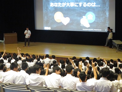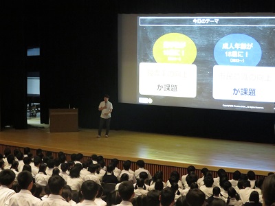 18歳選挙権が実施されて3年,奈良カレッジ高等部ではさらなる主権者意識向上のため,NPO法人 NEXT CONEXION 代表理事の越智大貴先生と香芝市選挙管理委員会の方々を講師にお招きして,6月7日(金)に高1~高3生徒対象に主権者教育講演会を行いました。